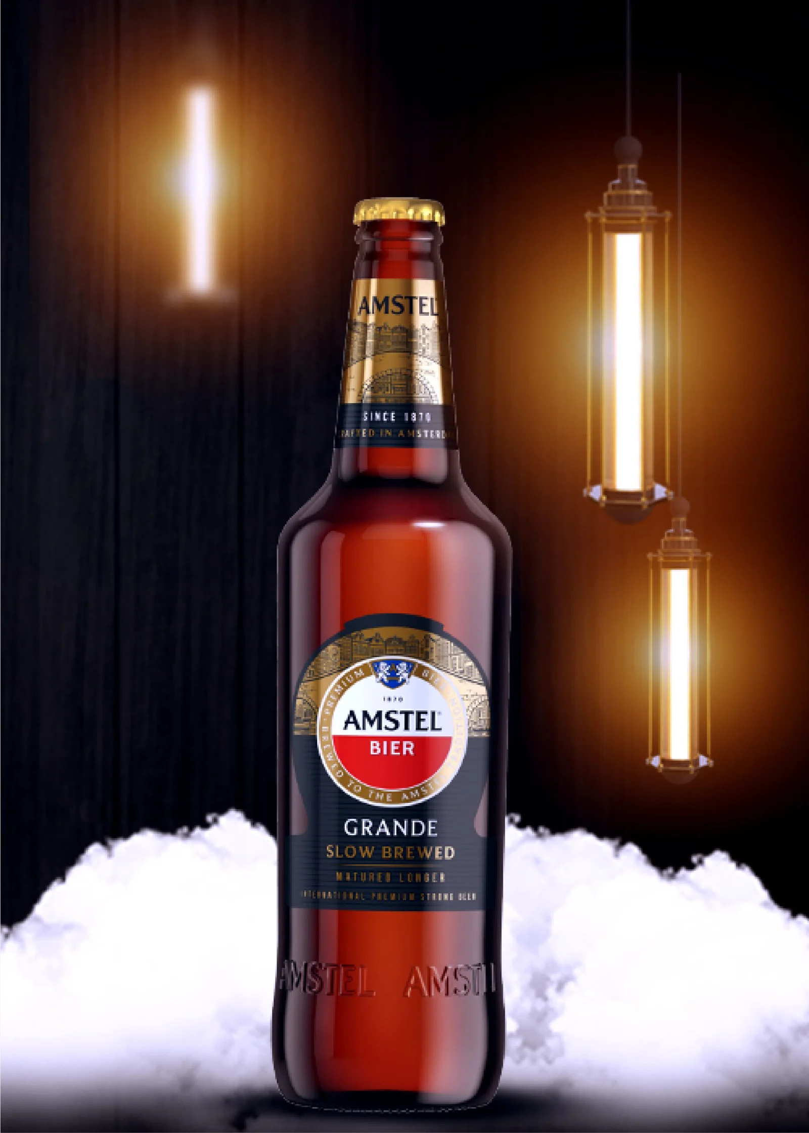 Amstel Grande is slow-brewed and matured for a longer period, resulting in a rich, smooth taste. Made with high-quality barley, Dutch yeast, and selected hops, this premium lager stands out for its purity containing no added sugar. It has also earned top scores in blind tastings, making it a reliable choice for those seeking quality. The extended maturation process results in a clean finish, making it highly drinkable and suitable for extended sessions.